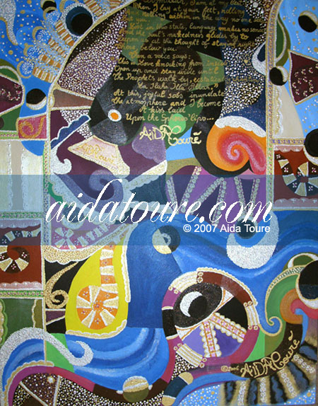 Description: 22″x28″ acrylic on canvas. In the Islamic tradition, The Lotus of The Limit is a gigantic celestial Tree that represents the point beyond which no one passes but the beloved (saw) of The Divine. This painting was inspired from a reality that is beyond the seven heavens and which was experienced by Prophet Muhammad (saw) during his nocturnal Miraj’ or Ascension. The poem that offered this painting was Sidrat Al Muntaha, The Lotus of The Limit.